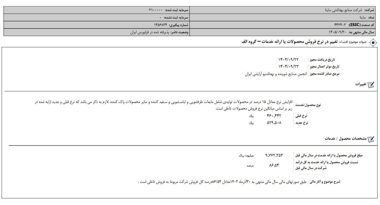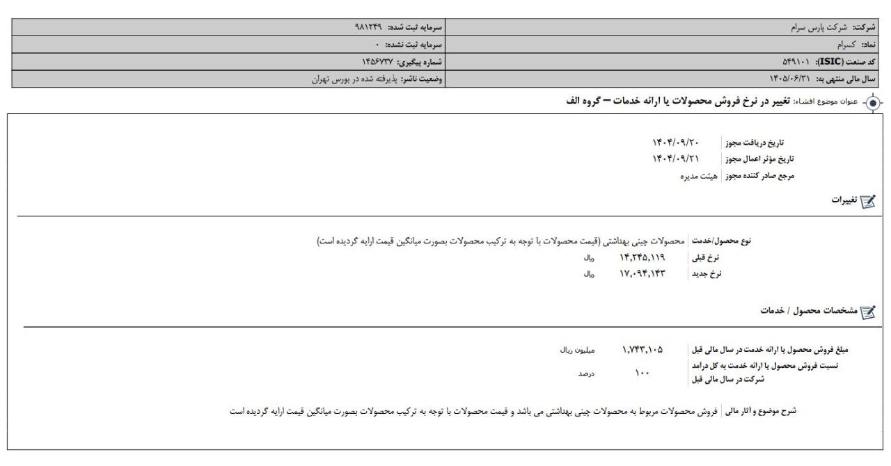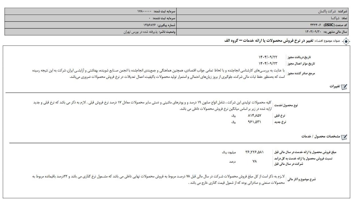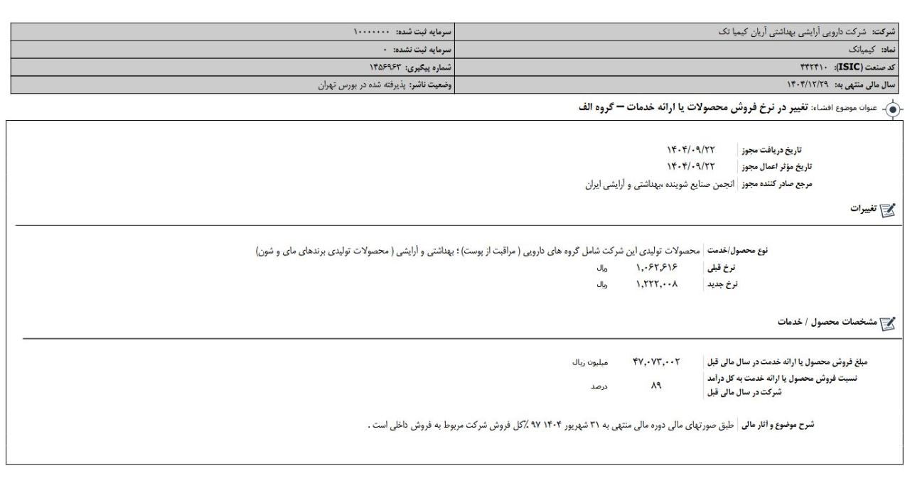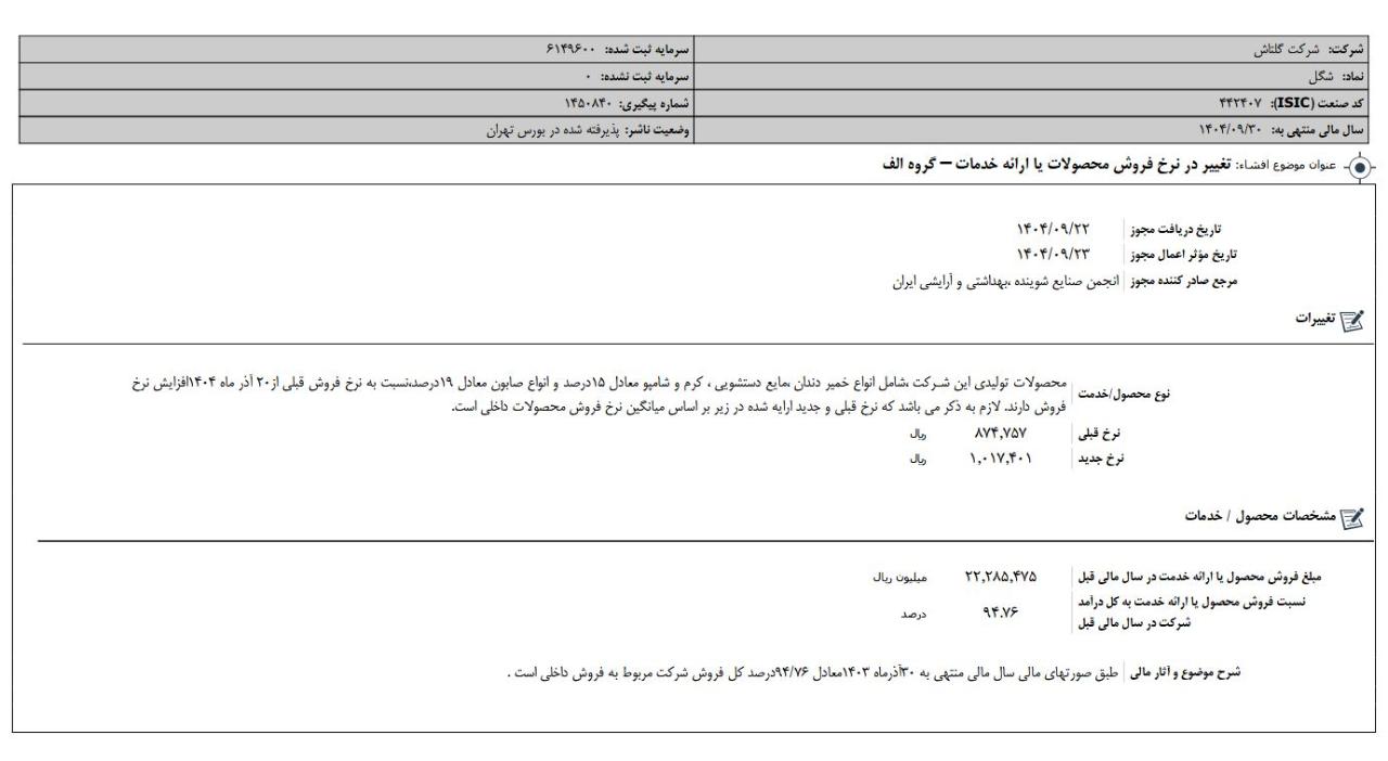 افشای اطلاعات بااهمیت، تغییر در نرخ فروش محصولات یا ارائه ی خدمات-گروه الف