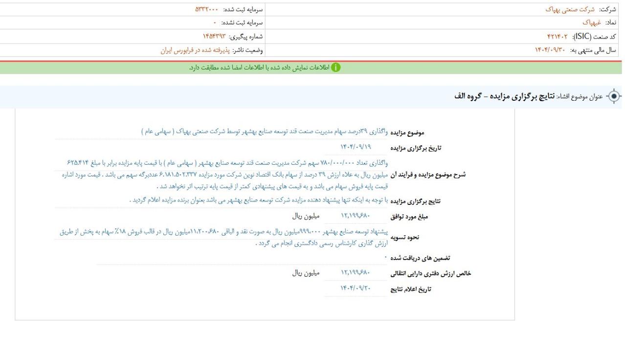 افشای اطلاعات بااهمیت،نتایج برگزاری مزایده-گروه الف