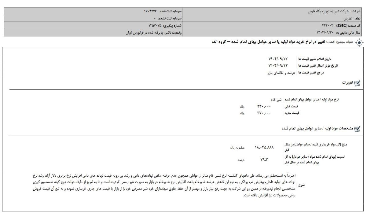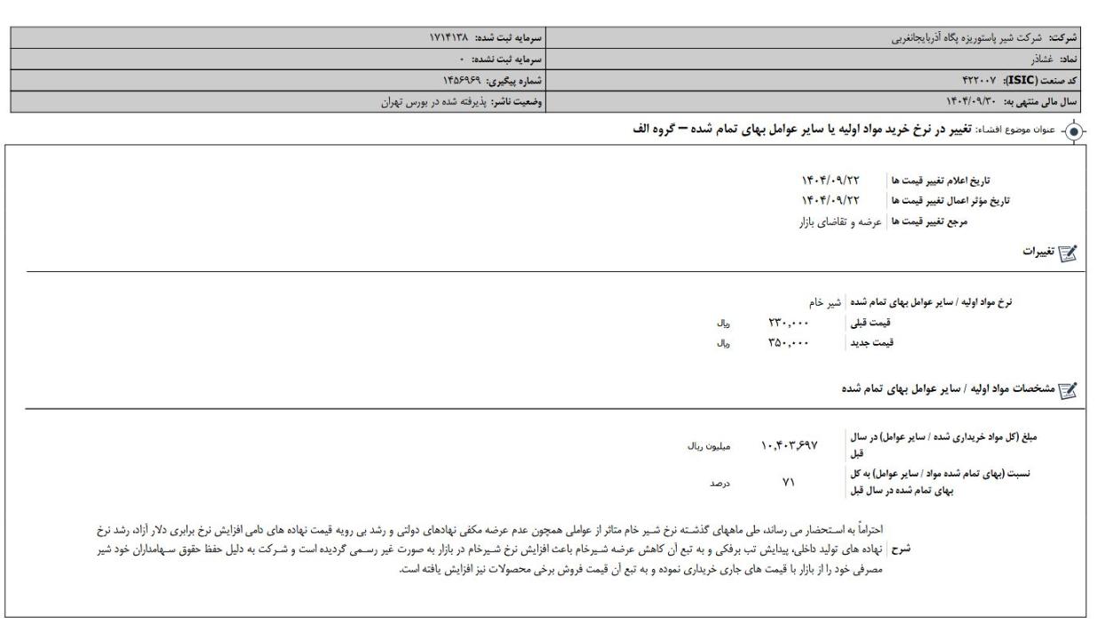 افشای اطلاعات بااهمیت، تغییر در نرخ خرید مواد اولیه یا سایر عوامل بهای تمام شده-گروه الف