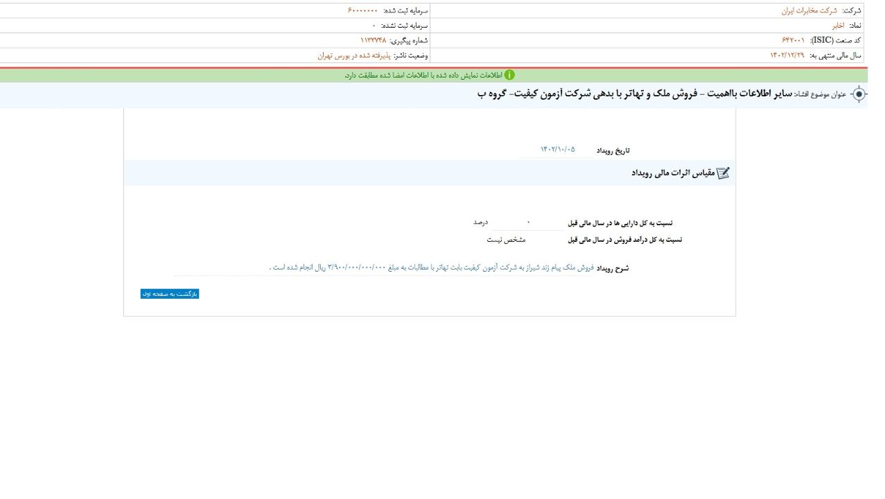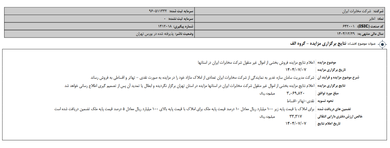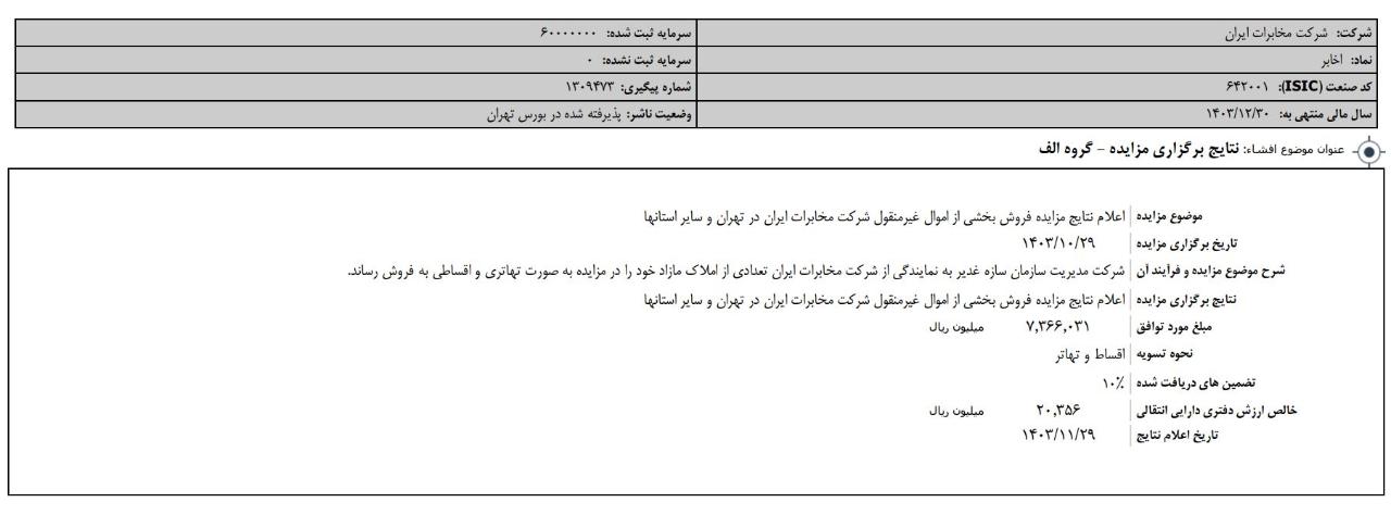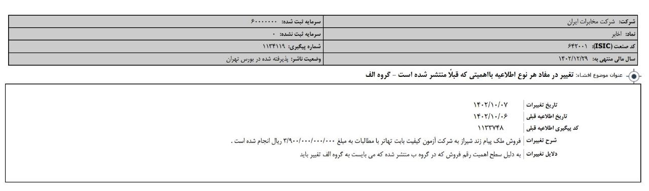 افشای اطلاعات بااهمیت، تغيير در مفاد هر نوع اطلاعيه بااهميتي كه قبلاً منتشر شده است، گروه الف