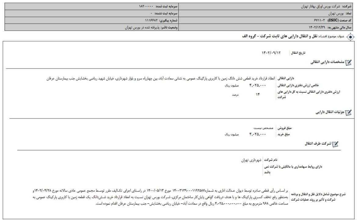 افشای اطلاعات بااهمیت، نقل و انتقال دارايي هاي ثابت شركت ، گروه الف