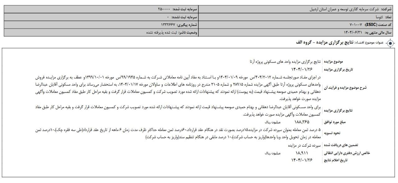 افشای اطلاعات بااهمیت، نتايج برگزاري مزايده - گروه الف