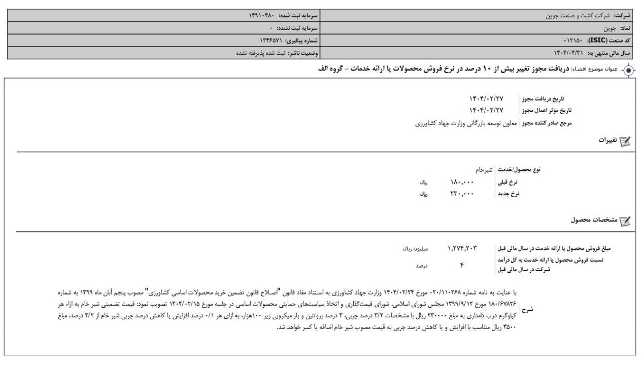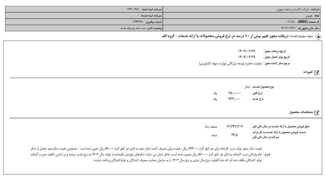 افشای اطلاعات بااهمیت، دريافت مجوز تغيير بيش از 10 درصد در نرخ فروش محصولات یا ارائه خدمات - گروه الف