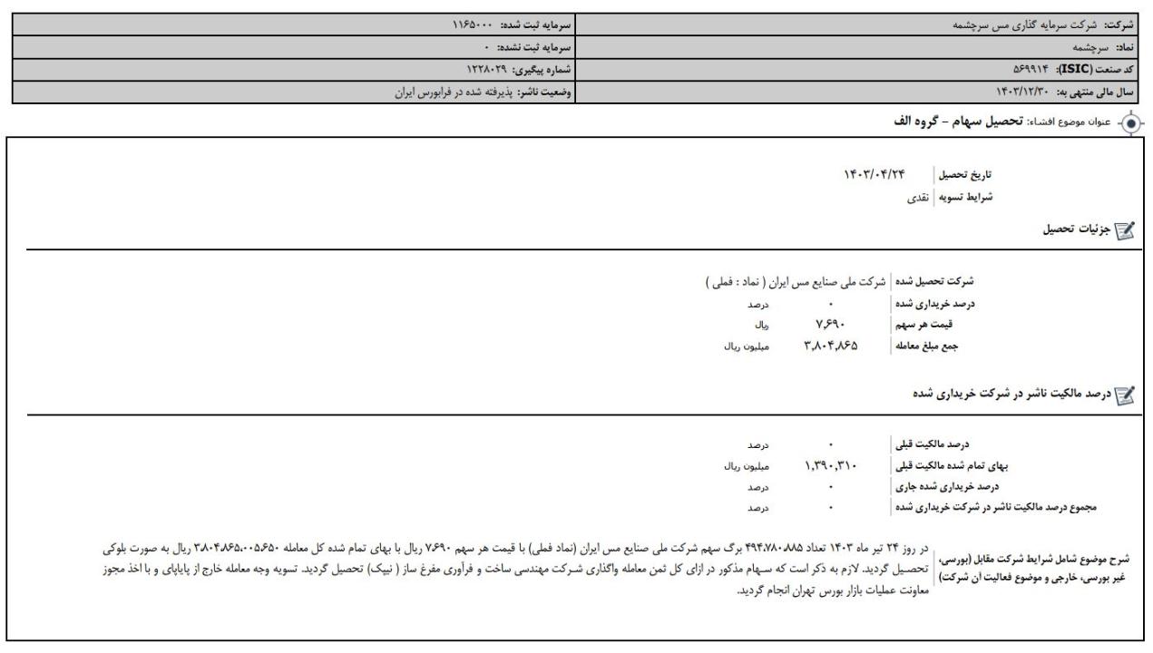 افشای اطلاعات بااهمیت، تغيير در مفاد هر نوع اطلاعيه بااهميتي كه قبلاً منتشر شده است ،گروه الف