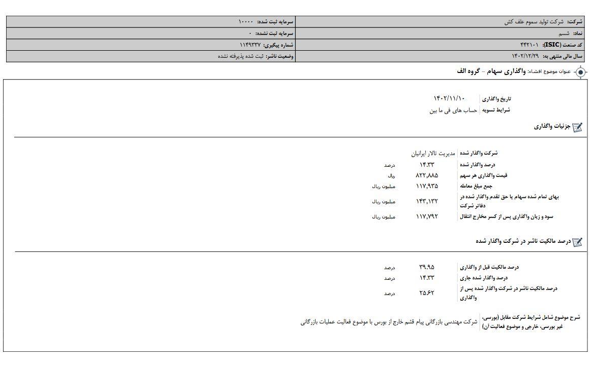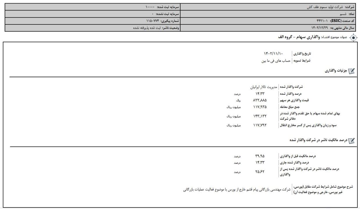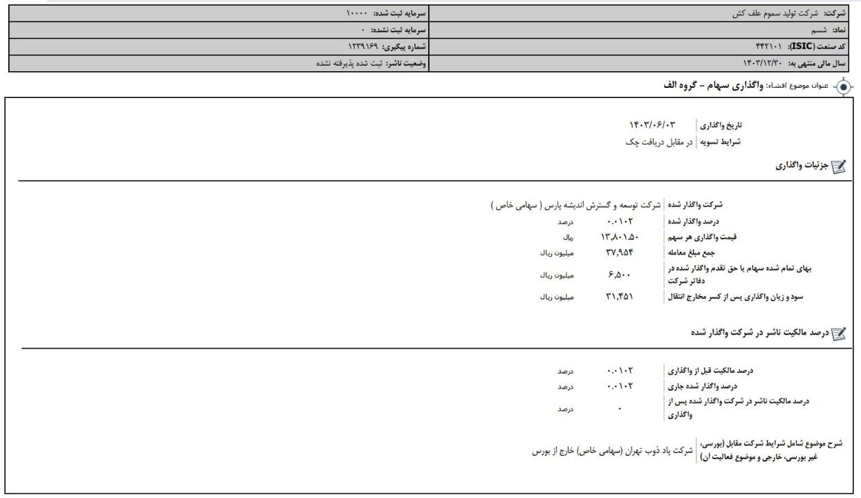 افشای اطلاعات بااهمیت،واگذاری سهام-گروه الف