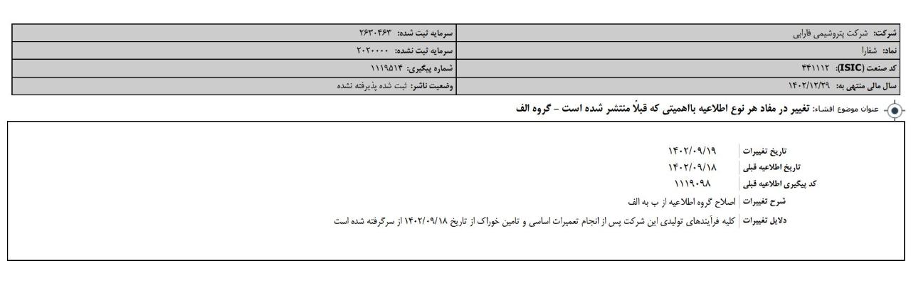 افشای اطلاعات بااهمیت،تغيير در مفاد هر نوع اطلاعيه بااهميتي كه قبلاً منتشر شده است،- گروه الف