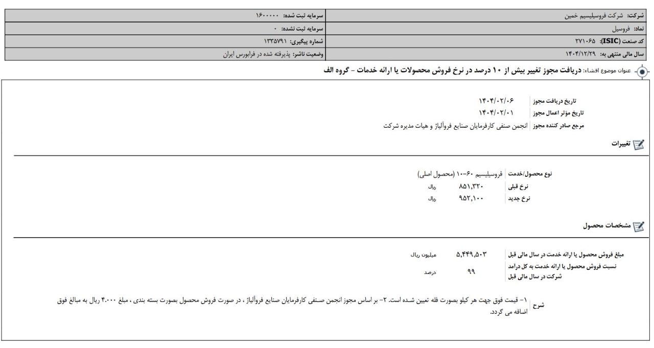 افشای اطلاعات بااهمیت، دريافت مجوز تغيير بيش از 10 درصد در نرخ فروش محصولات یا ارائه خدمات - گروه الف