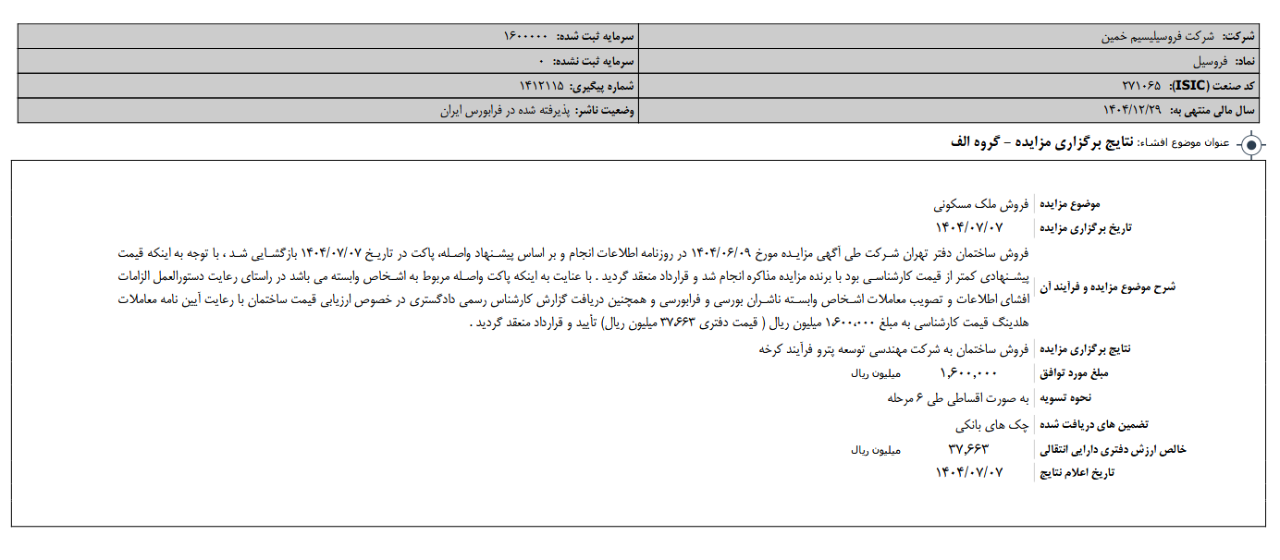 افشای اطلاعات بااهمیت، نتایج برگزاری مزایده،گروه الف