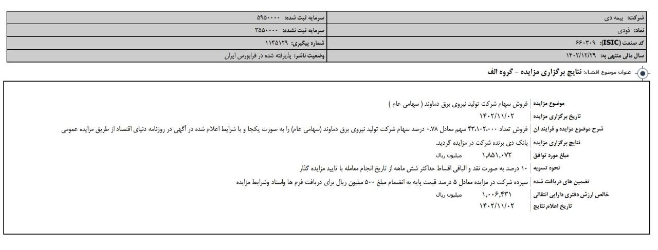 افشای اطلاعات بااهمیت، نتایج برگزاری مزایده، گروه الف