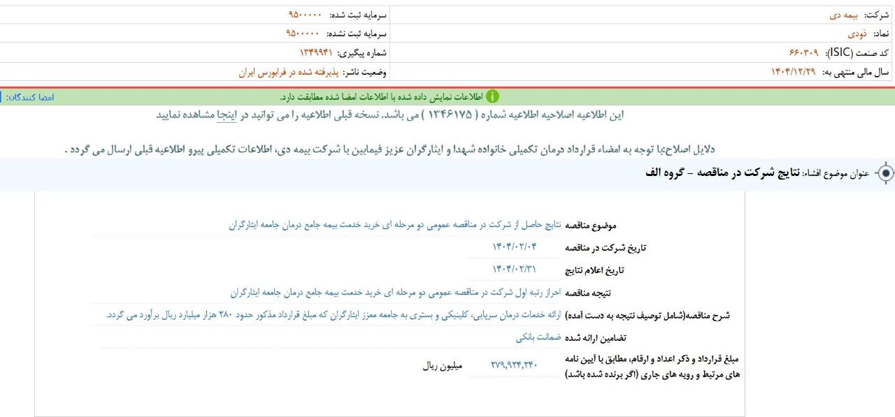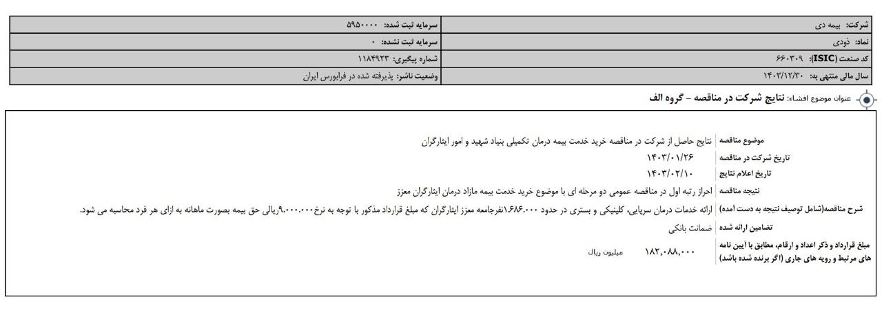 افشای اطلاعات بااهمیت،نتایج شرکت در مناقصه،گروه الف