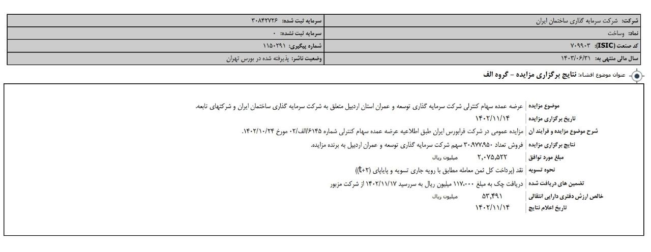 افشای اطلاعات بااهمیت،نتايج برگزاري مزايده ، گروه الف