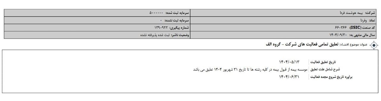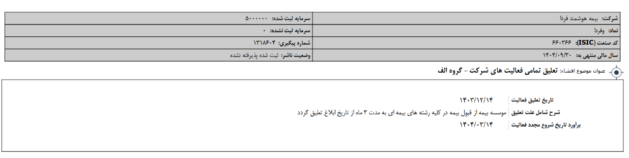 افشای اطلاعات بااهمیت،تعليق تمامي فعاليت هاي شركت - گروه الف
