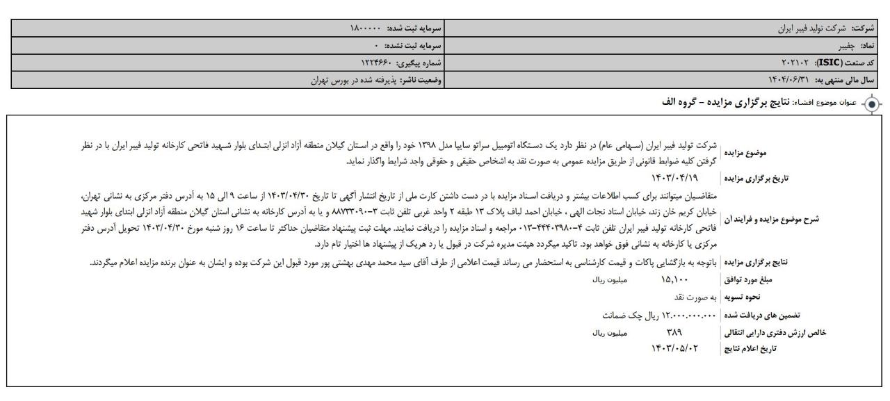 افشای اطلاعات بااهمیت،نتایج برگزاری مزایده، گروه الف