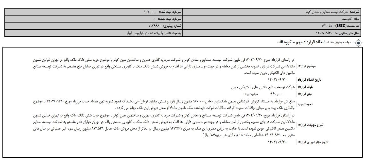 افشای اطلاعات بااهمیت،انعقاد قرارداد مهم ، گروه الف