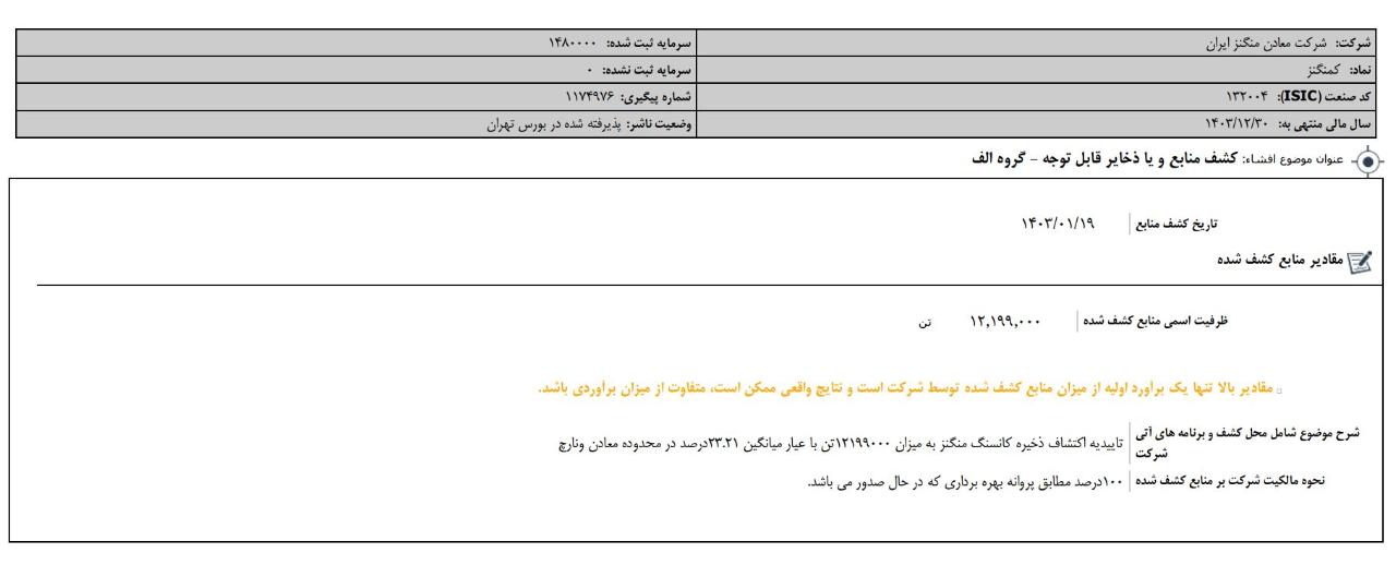 افشای اطلاعات بااهمیت،كشف منابع و يا ذخاير قابل توجه ،گروه الف