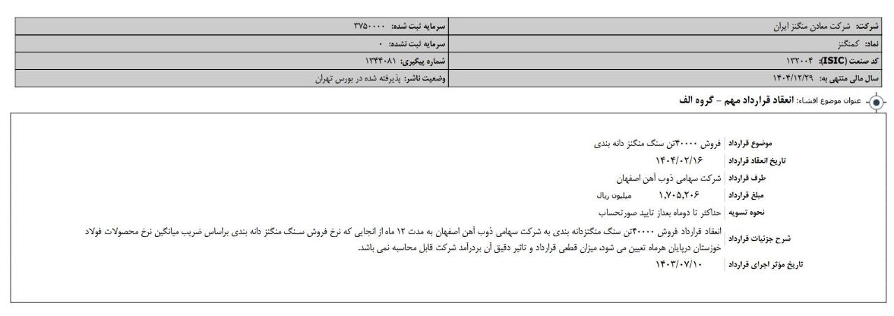 افشای اطلاعات بااهمیت،انعقاد قرارداد مهم - گروه الف