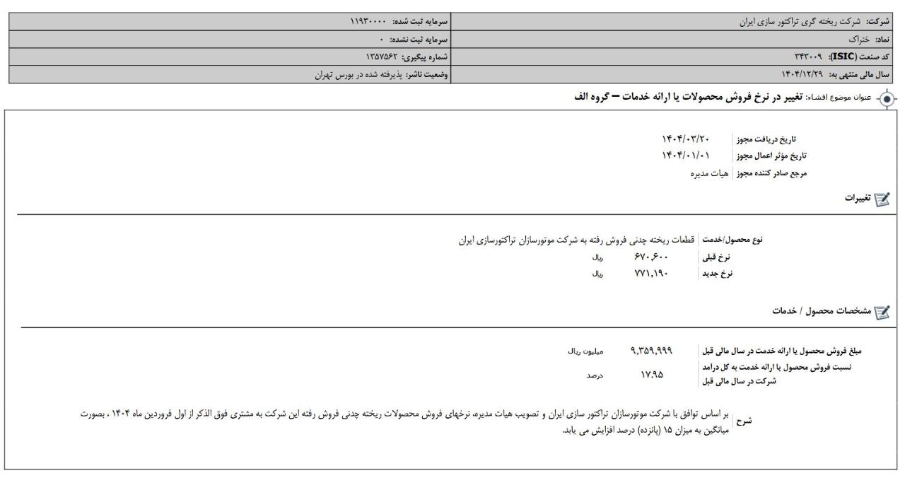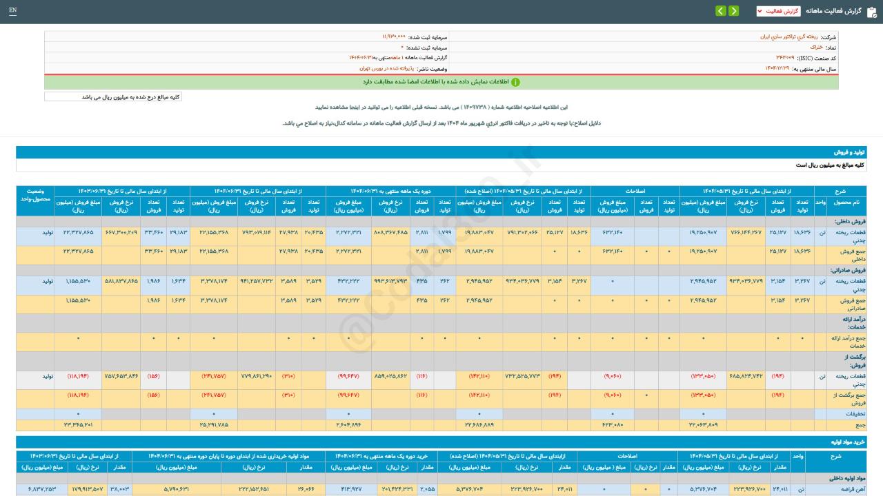 #گزارش_فعالیت_ماهانه #دوره_1_ماهه منتهی به 14040631 شرکت #ریخته_گری_تراکتور_سازی_ایران