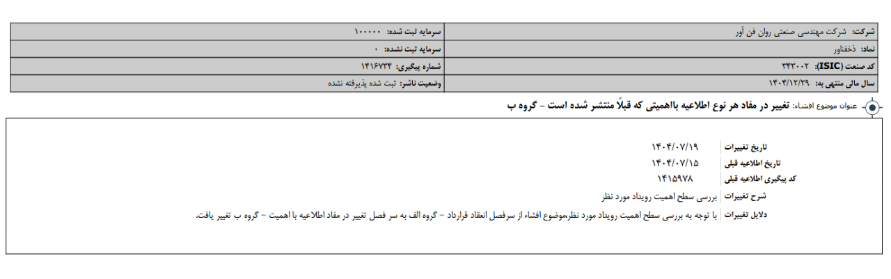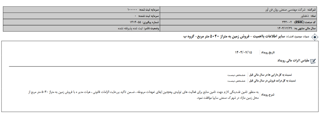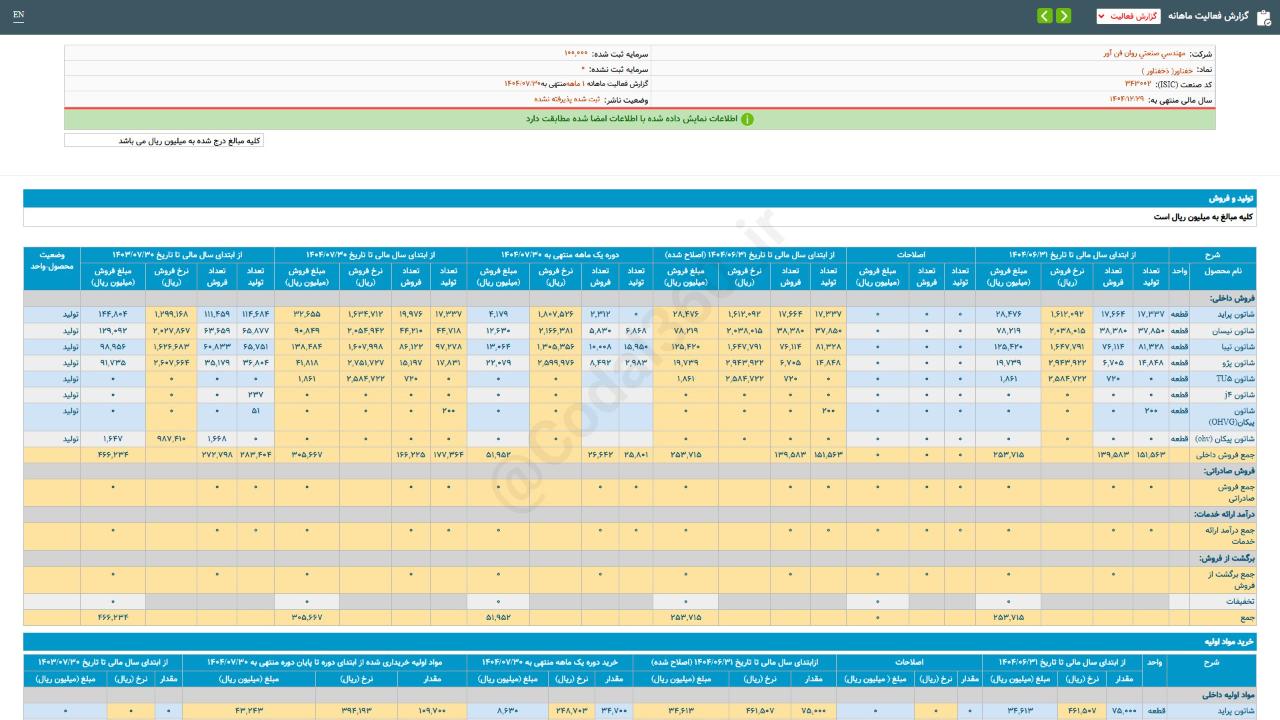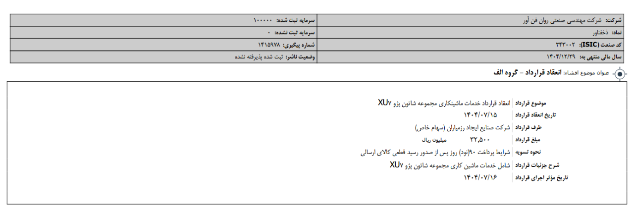 #گزارش_فعالیت_ماهانه #دوره_1_ماهه منتهی به 14040730 شرکت #مهندسی_صنعتی_روان_فن_آور