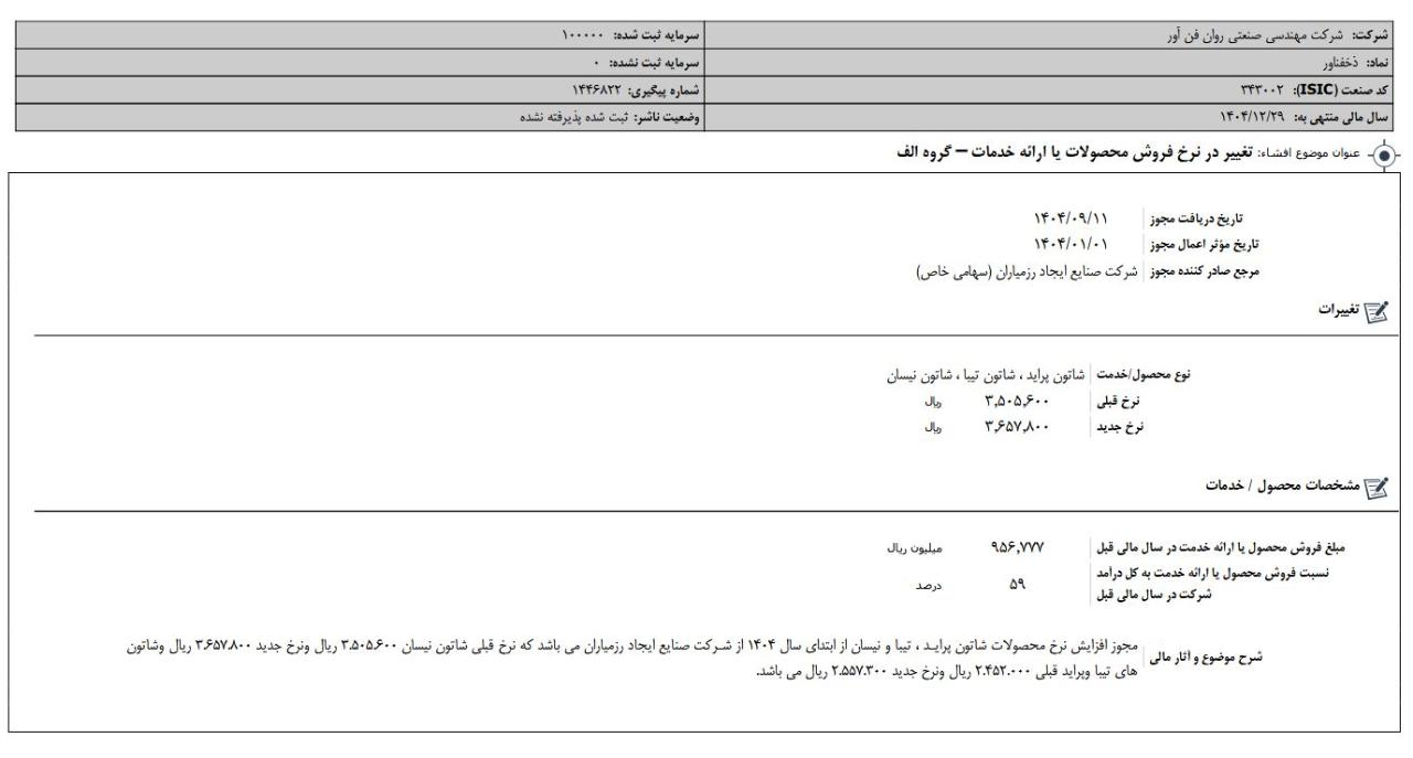 افشای اطلاعات بااهمیت،تغییر در نرخ فروش محصولات یا ارائه ی خدمات-گروه الف