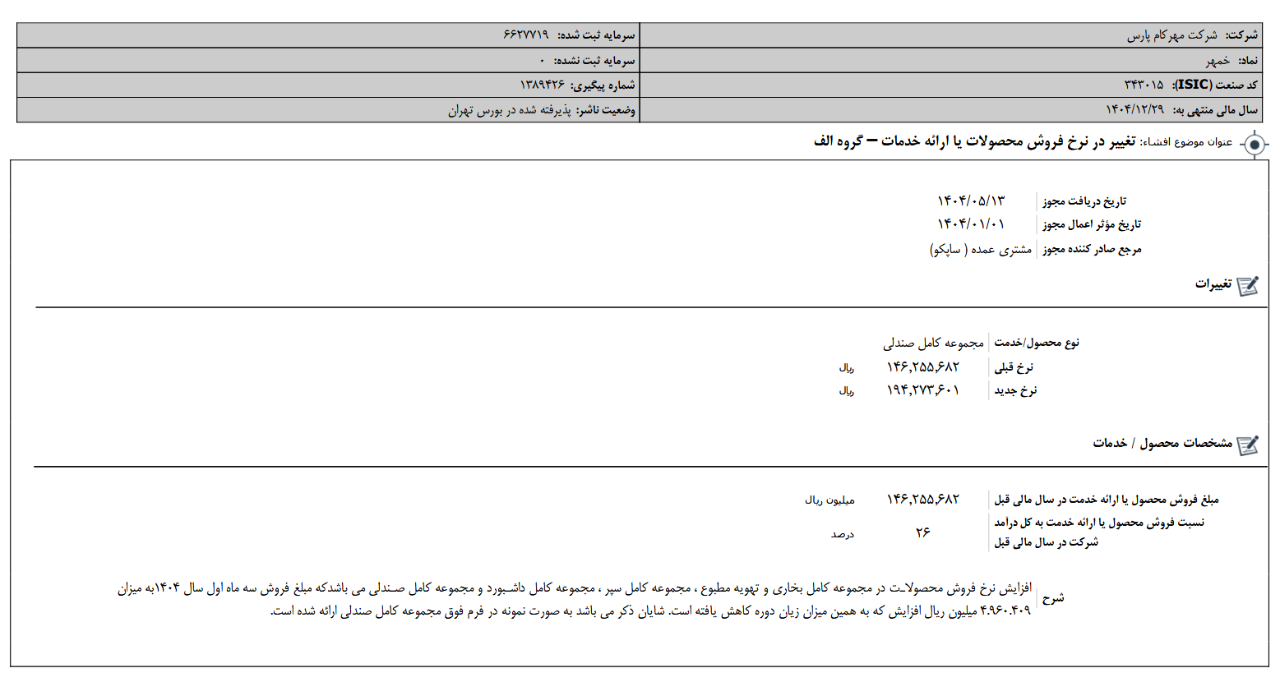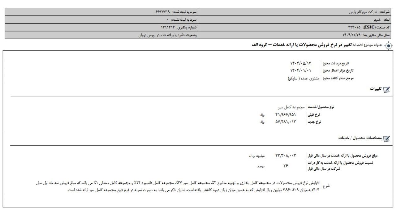 افشای اطلاعات بااهمیت، تغییر در نرخ فروش محصولات یا ارائه ی خدمات، گروه الف