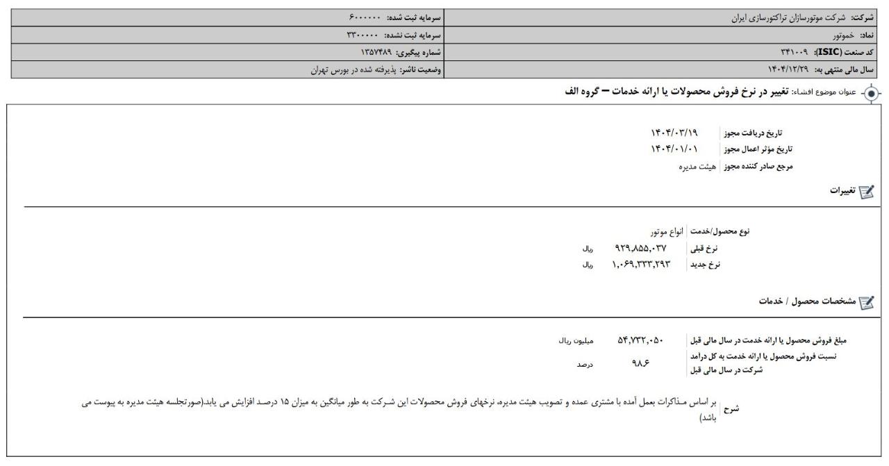عدم دریافت افزایش نرخ متناسب با رشد هزینه ها، واردات بی رویه تراکتور در نیمه اول سال توسط ویژه خواران و همچنین کاهش اندک در تولید و فروش به سبب شرایط به وجود آمده باعث می شود تا سود خموتور از سال 1403 کمتر باشد.