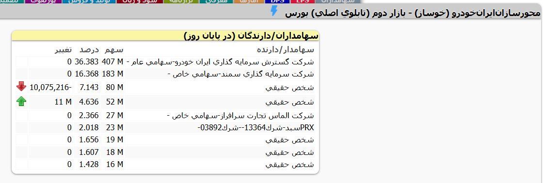 در روز معاملاتی 27 مرداد یکی از سهامدارن حقیقی در #خوساز اقدام به فروش سهام نمود و از جمع سهامداران بالای یک درصد خارج شد. دو حقیقی دیگر هم حجم بالا خریدند و فروختند.