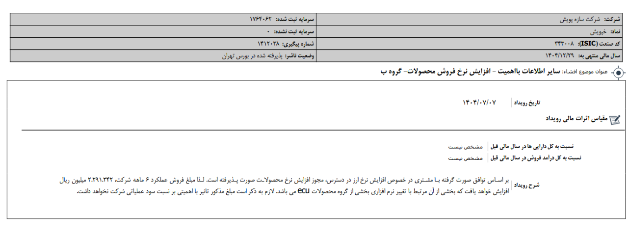 ●#خوساز درآمد[6,955م.ت]رشد40%