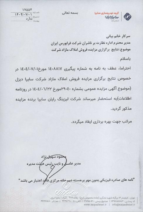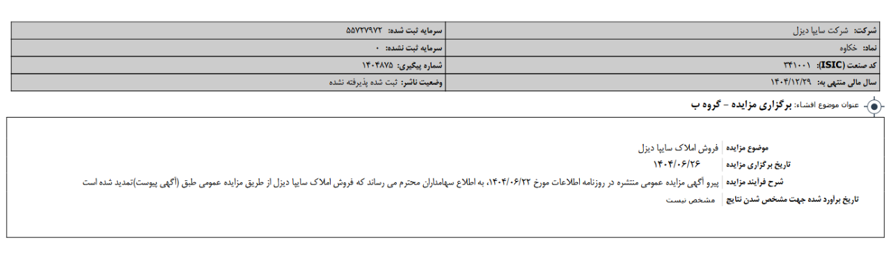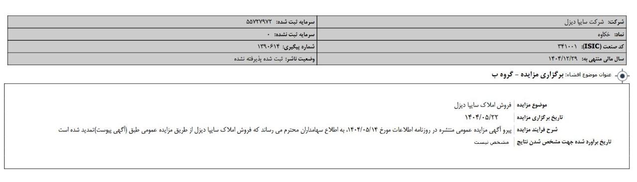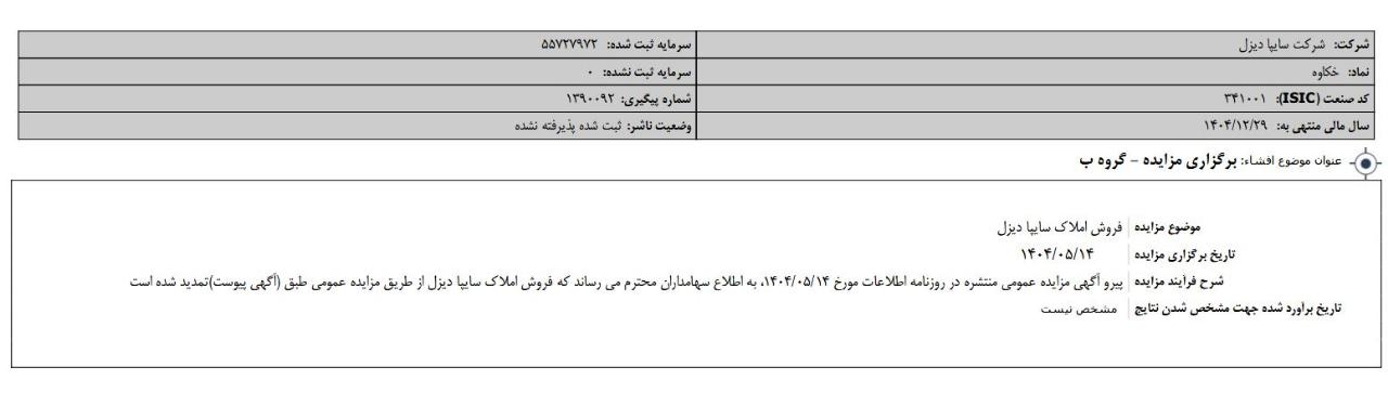 افشای اطلاعات بااهمیت،نتایج برگزاری مزایده، فروش املاک مازاد-شرکت-گروه ب