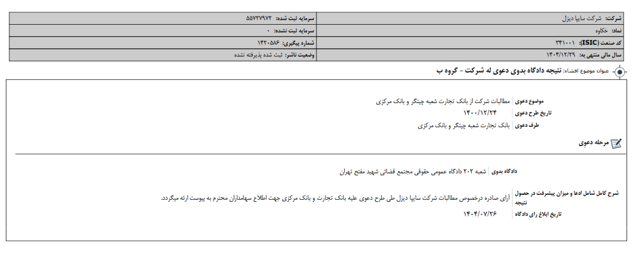 افشای اطلاعات بااهمیت،نتیجه دادگاه بدوی دعوی له شرکت-گروه ب