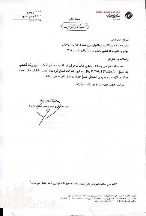 افشای اطلاعات بااهمیت،برگ قطعی مالیات و عوارض برارزش افزوده- گروه ب