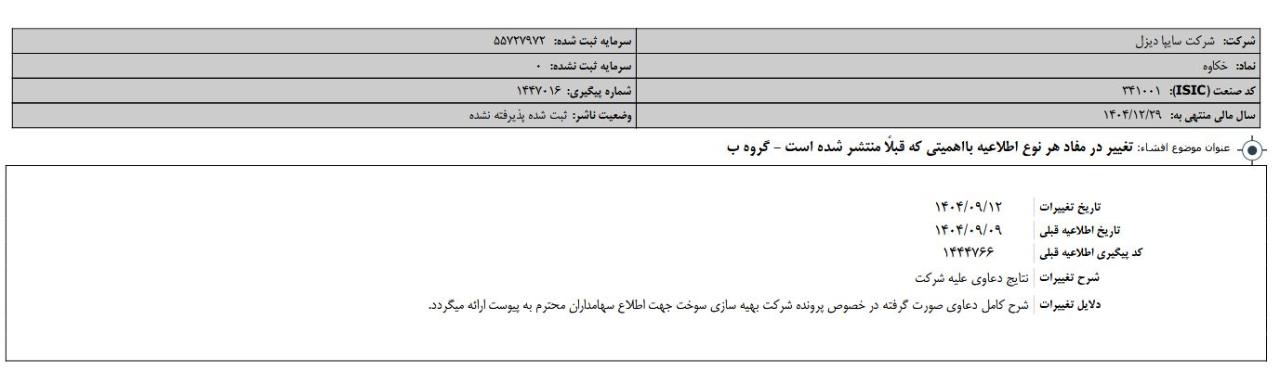 افشای اطلاعات بااهمیت، تغییر در مفاد هر نوع اطلاعیه ی بااهمیتی که قبلا منتشر شده است-گروه ب