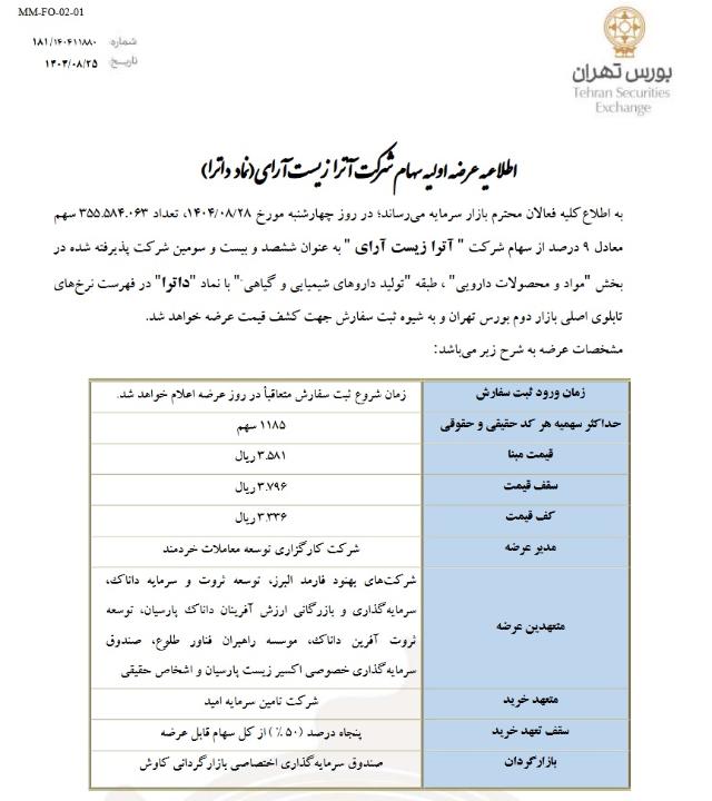 اطلاعیه #عرضه_اولیه سهام شرکت آترازیست آرای در نماد #داترا