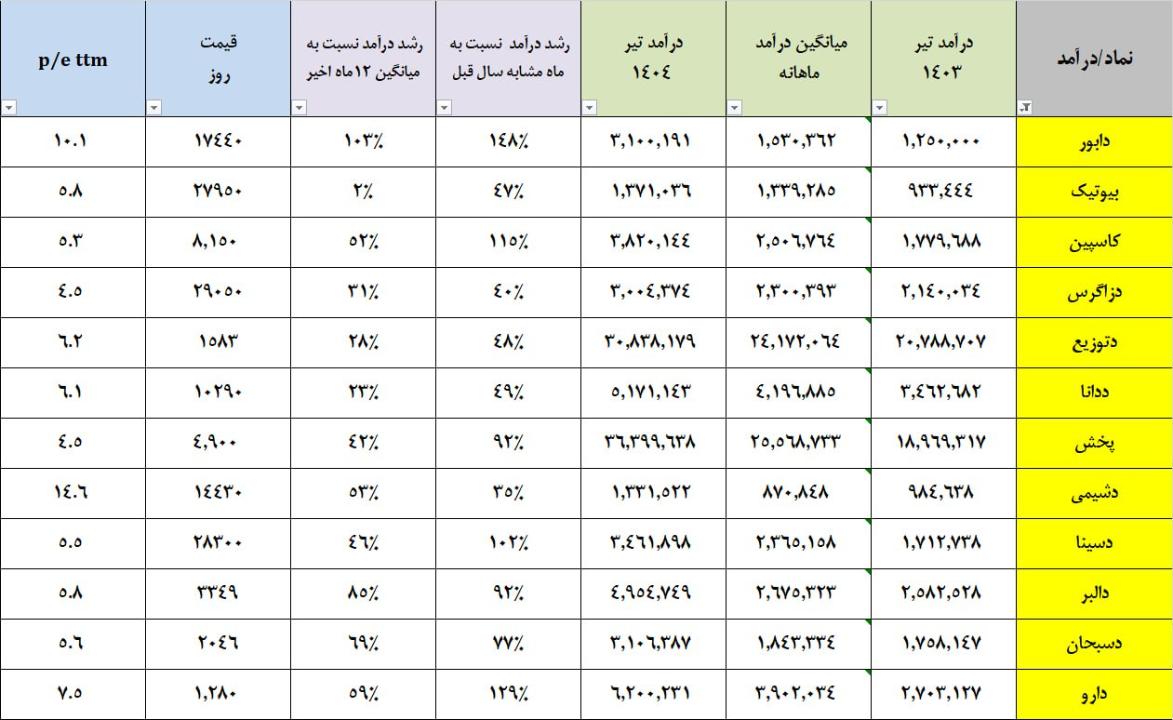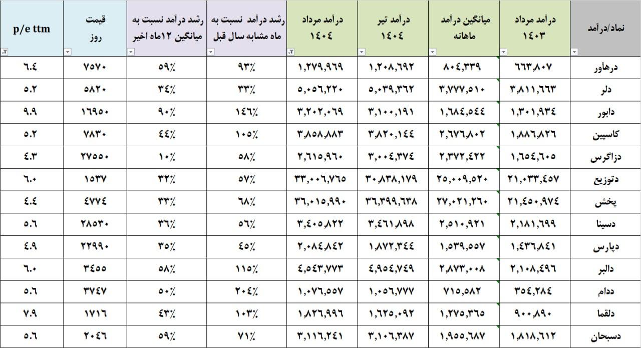 اعداد جدول فوق محاسبه سود نمادهای زیر است: