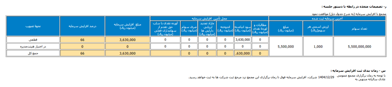 منتشر شده در اصلاحیه اطلاعات و صورتهای مالی میاندوره ای دوره 6 ماهه منتهی به 1404.06.31 حسابرسی نشده ، تاریخ انتشار در کدال1404.08.13