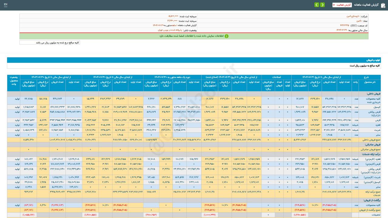 #گزارش_فعالیت_ماهانه #دوره_1_ماهه منتهی به 14040730 شرکت #داروسازی_امین
