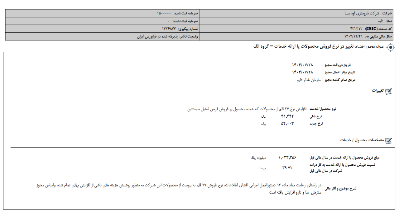اطلاعات و #صورتهای_مالی_میاندورهای تلفیقی #دوره_6_ماهه منتهی به 14040631 حسابرسی شده شرکت #داروسازی_آوه_سینا