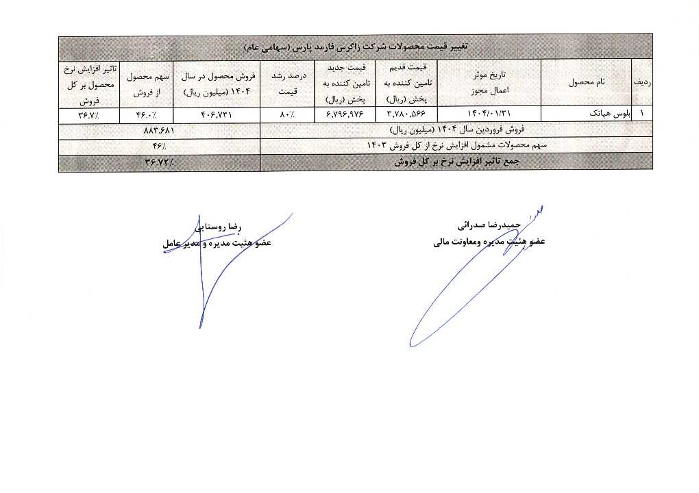 فروش زاگرس فارمد پارس ۳۶ درصد رشد کرد