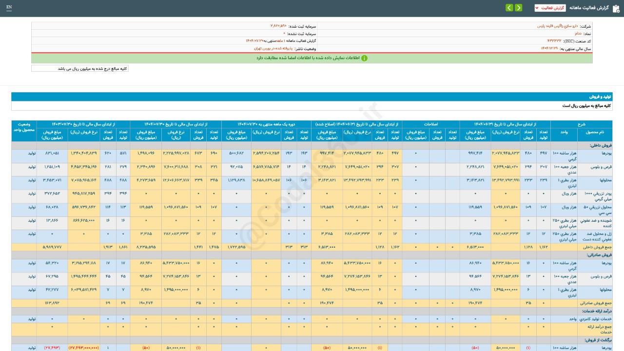 این در حالی‌ است که فروش تیرماه سال گذشته این شرکت ۵۷۷ میلیارد ریال بوده است.