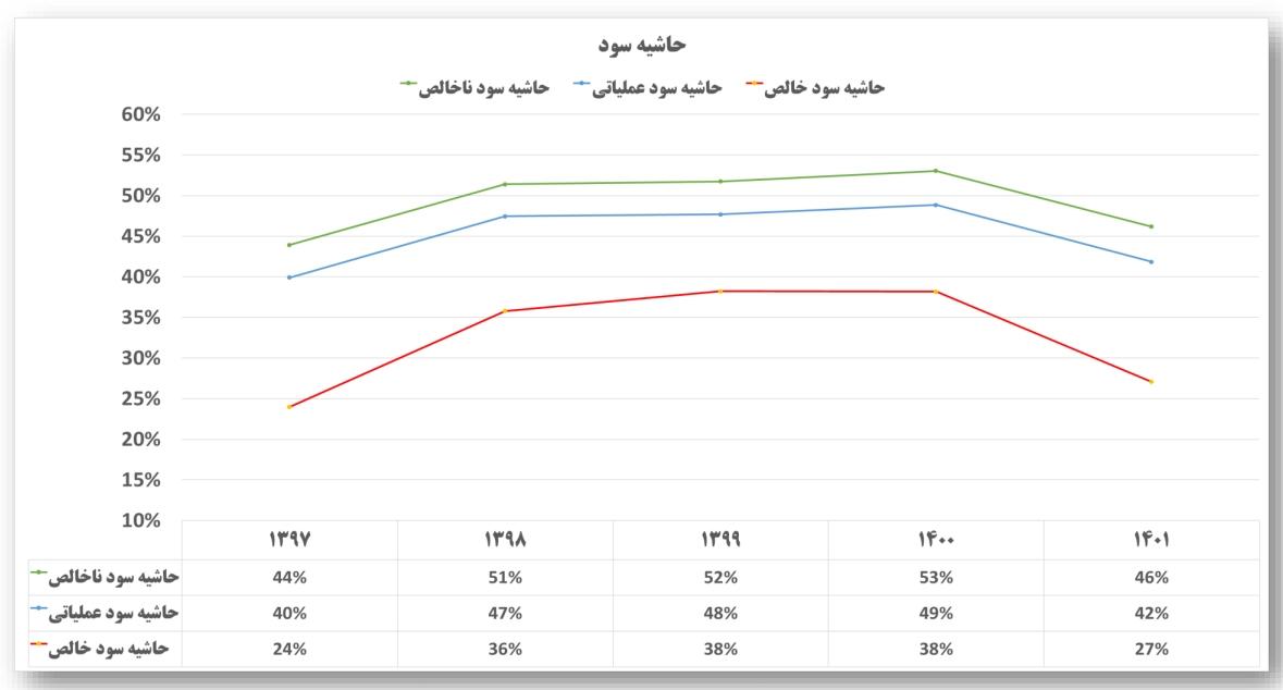 ✦ با توجه به مفروضات تحلیل سود به ازای هر سهم در سال 1401 عدد 4430 ریال پیش بینی می شود که با توجه به قیمت روز سهم نسبت PEسهم 45 برآورد می شود.