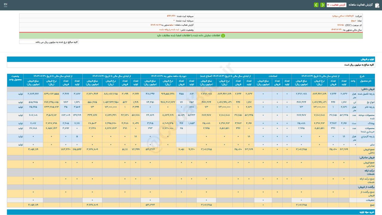 ▪️ شرکت بنیان دیزل طی عملکرد 1 ماهه منتهی به 14040830 معادل 170,170 میلیون ریال، از محصولات خود را به فروش رسانده است.