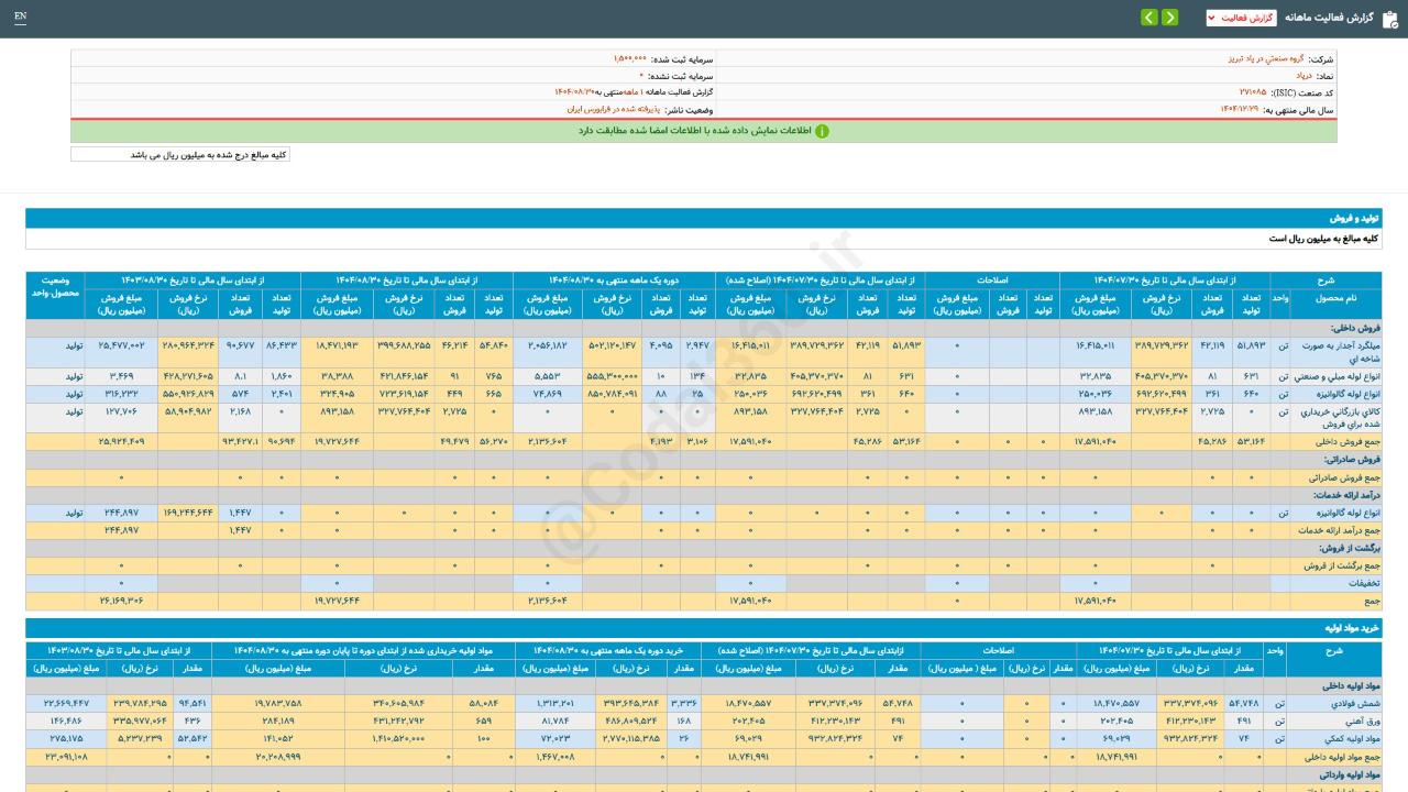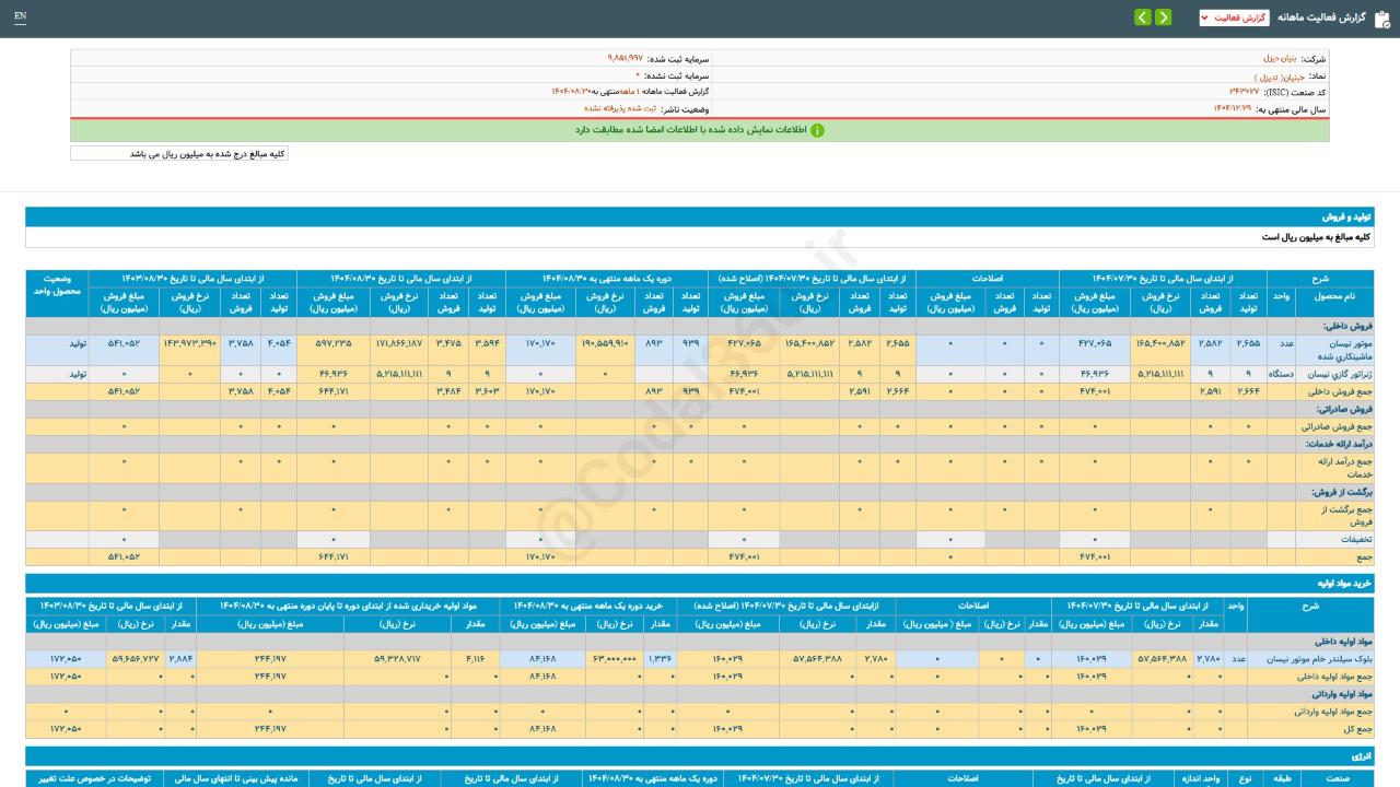#گزارش_فعالیت_ماهانه #دوره_1_ماهه منتهی به 14040830 شرکت #بنیان_دیزل