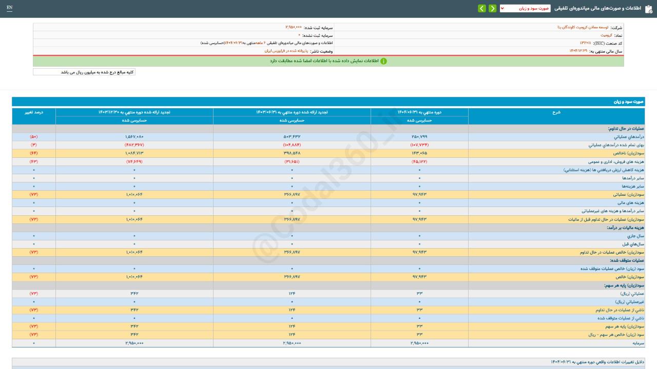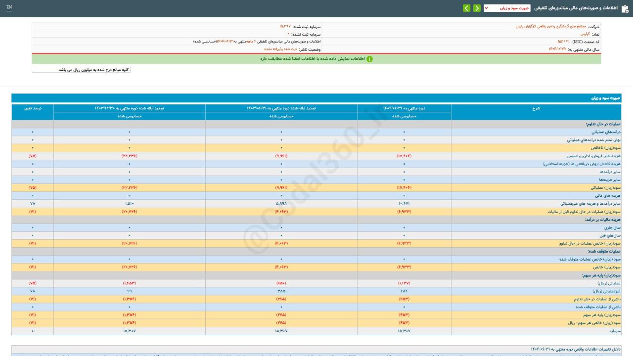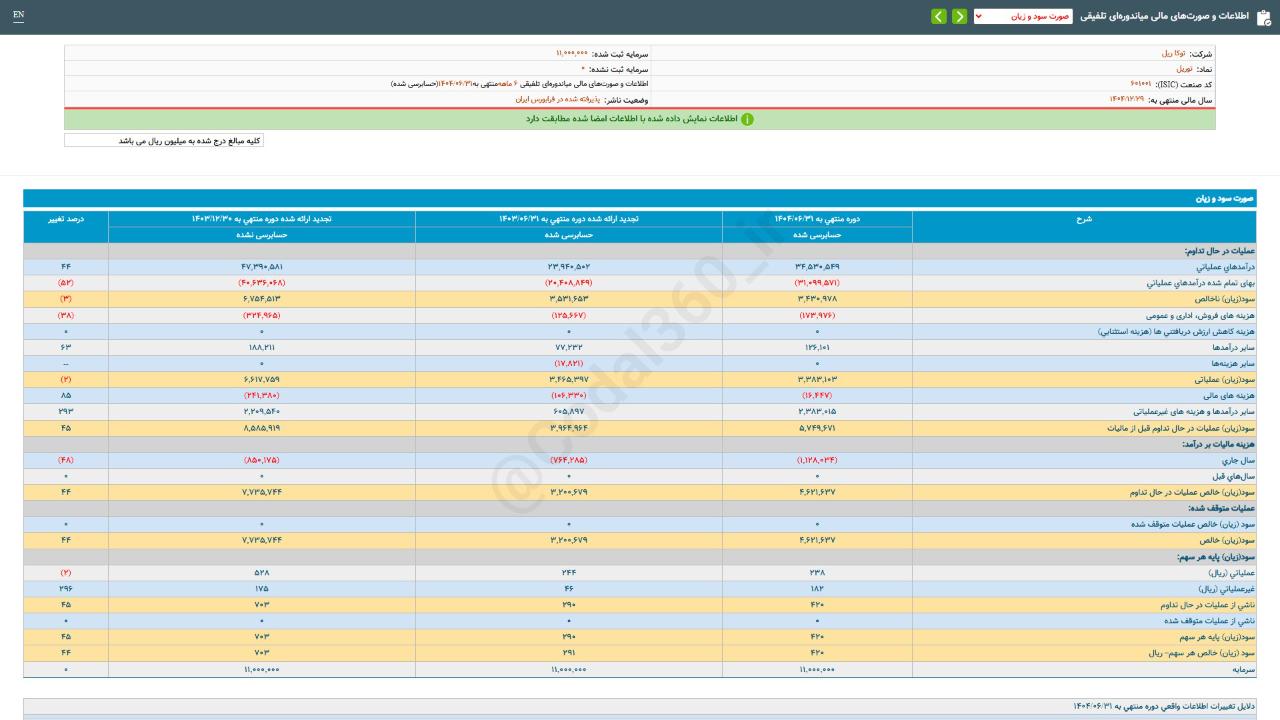 اطلاعات و #صورتهای_مالی_میاندورهای تلفیقی #دوره_6_ماهه منتهی به 14040631 حسابرسی شده شرکت #صنایع_آذر_آب