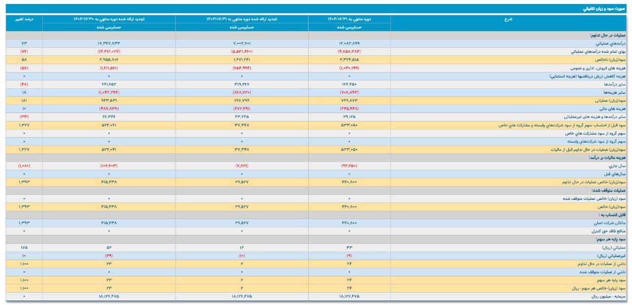 ▪️ شرکت در گزارش تلفیقی مبلغ 440,800 میلیون ریال سود شناسایی کرده که نسبت به مدت مشابه سال قبل 1,393 درصد رشد داشته است.