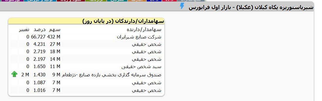 خریدار #غگیلا در معامله بلوکی روز 18 تیرماه صندوق سرمايه گذاري بخشي بازده صنايع -ذژطعام بود که با یان خرید به جمع سهامداران بالای یک درصد پگاه گیلان پیوست