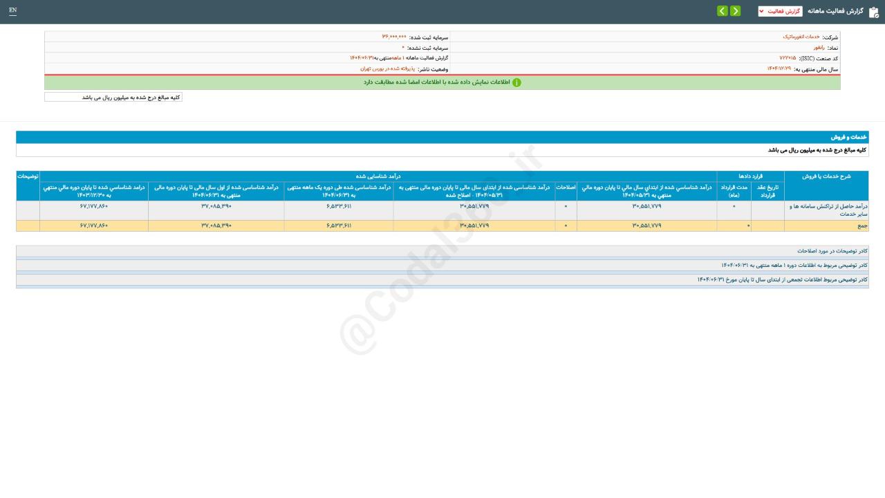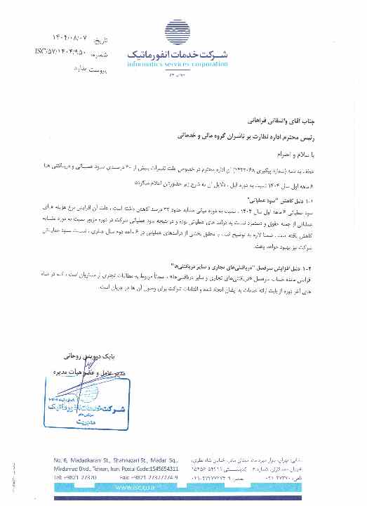 #گزارش_فعالیت_ماهانه #دوره_1_ماهه منتهی به 14040631 شرکت #خدمات_انفورماتیک