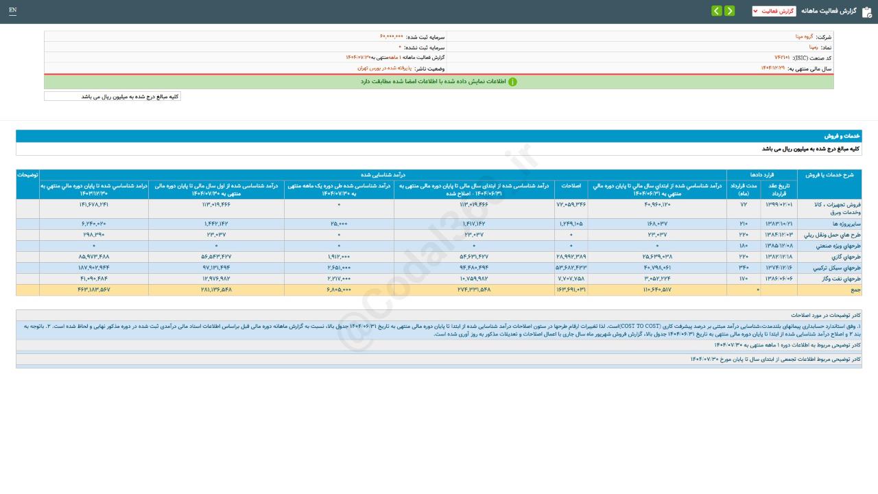 #گزارش_فعالیت_ماهانه #دوره_1_ماهه منتهی به 14040730 شرکت #گروه_مپنا