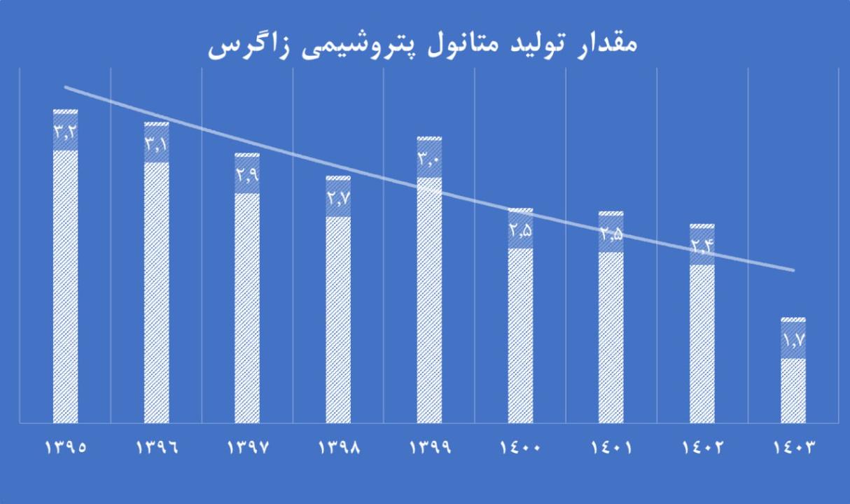 با پیشرفت کشور در سال های اخیر مقدار تولید متانول این شرکت ابتدا به 2.5میلیون تن کاهش یافت و با یک جهش در سال 1403 به قلهء 1.7میلیون تن تولید تنزل یافت.