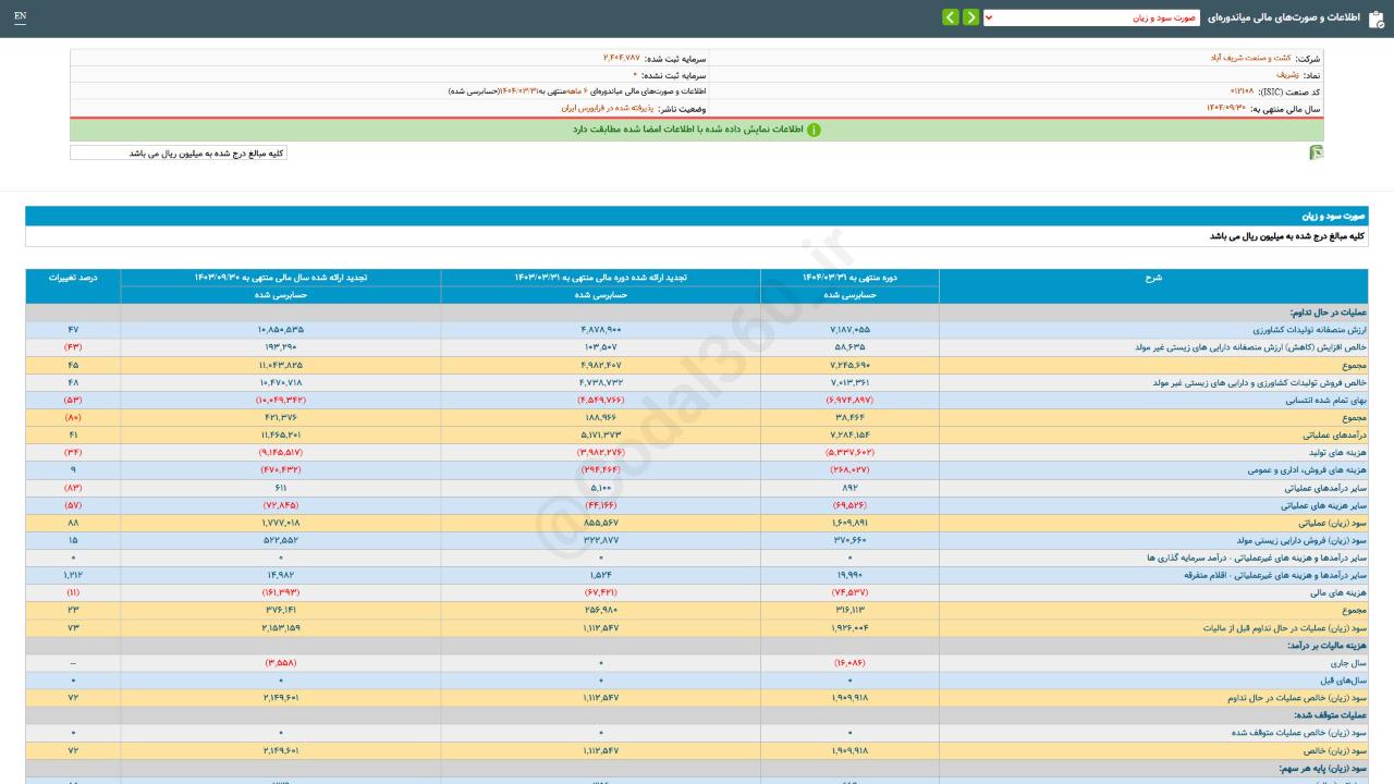 ●#زشریف درآمد[1,140م.ت]رشد54%
