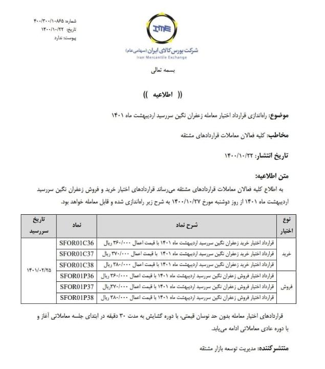 قرارداد آتی زعفران نگین