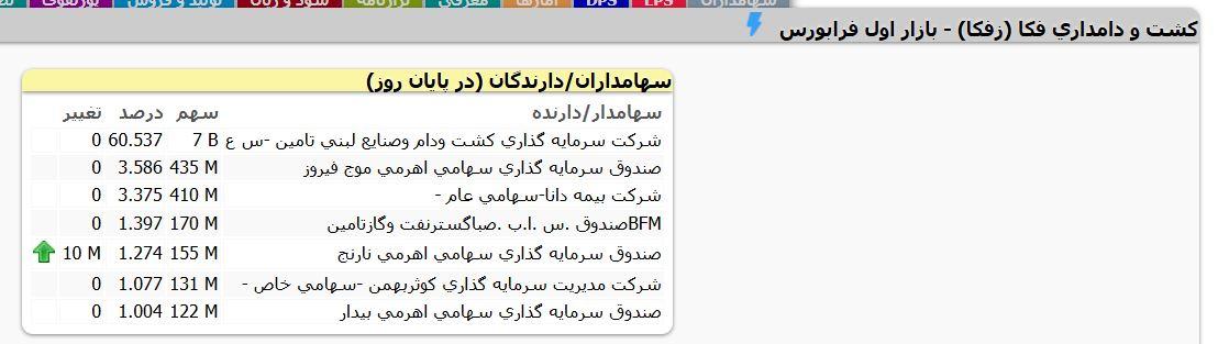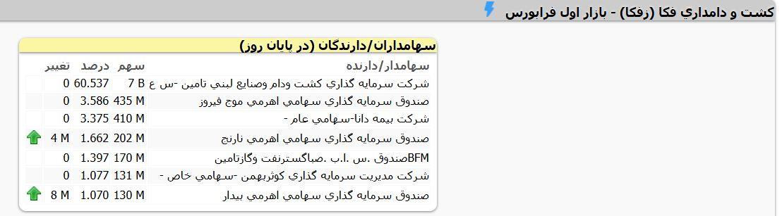 فروشنده و خریدار كشت و دامداري فك در این معامله بلوکی حقوقی بودند. قیمت هر سهم 4985 ریال بود.